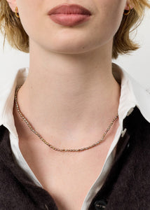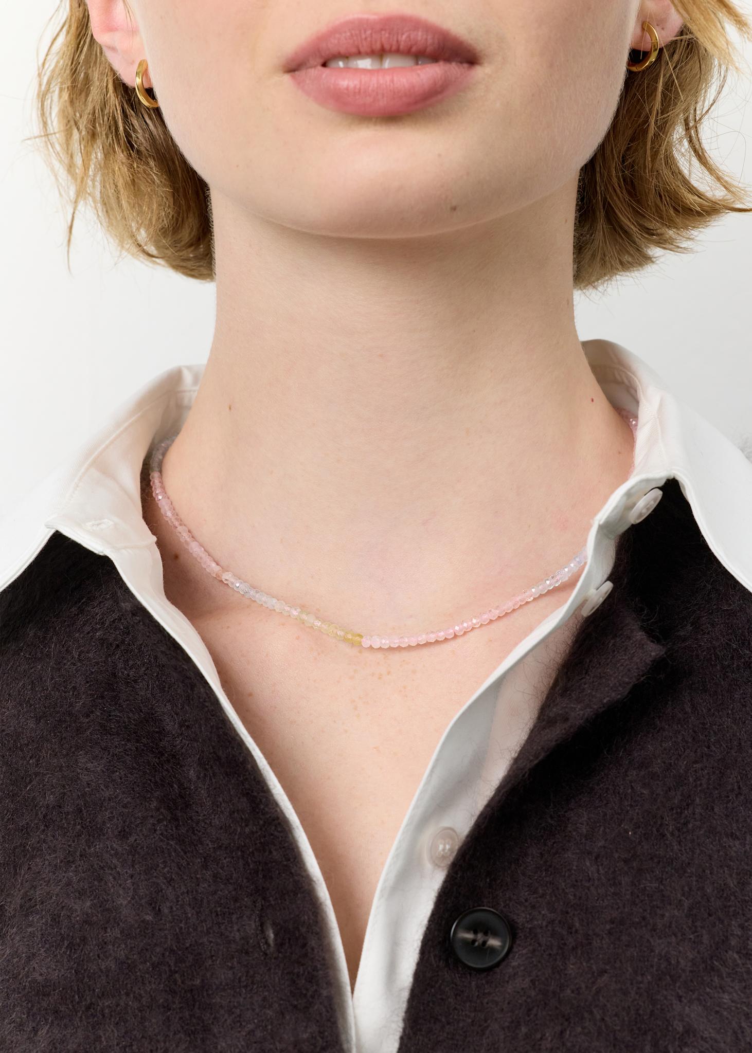 Sød halskæde i guldbelagt sterling sølv sat med beryl ædelsten i lyserøde, grønne og blå nuancer fra carré jewellery med en guld s lås, perfekt gave til hende