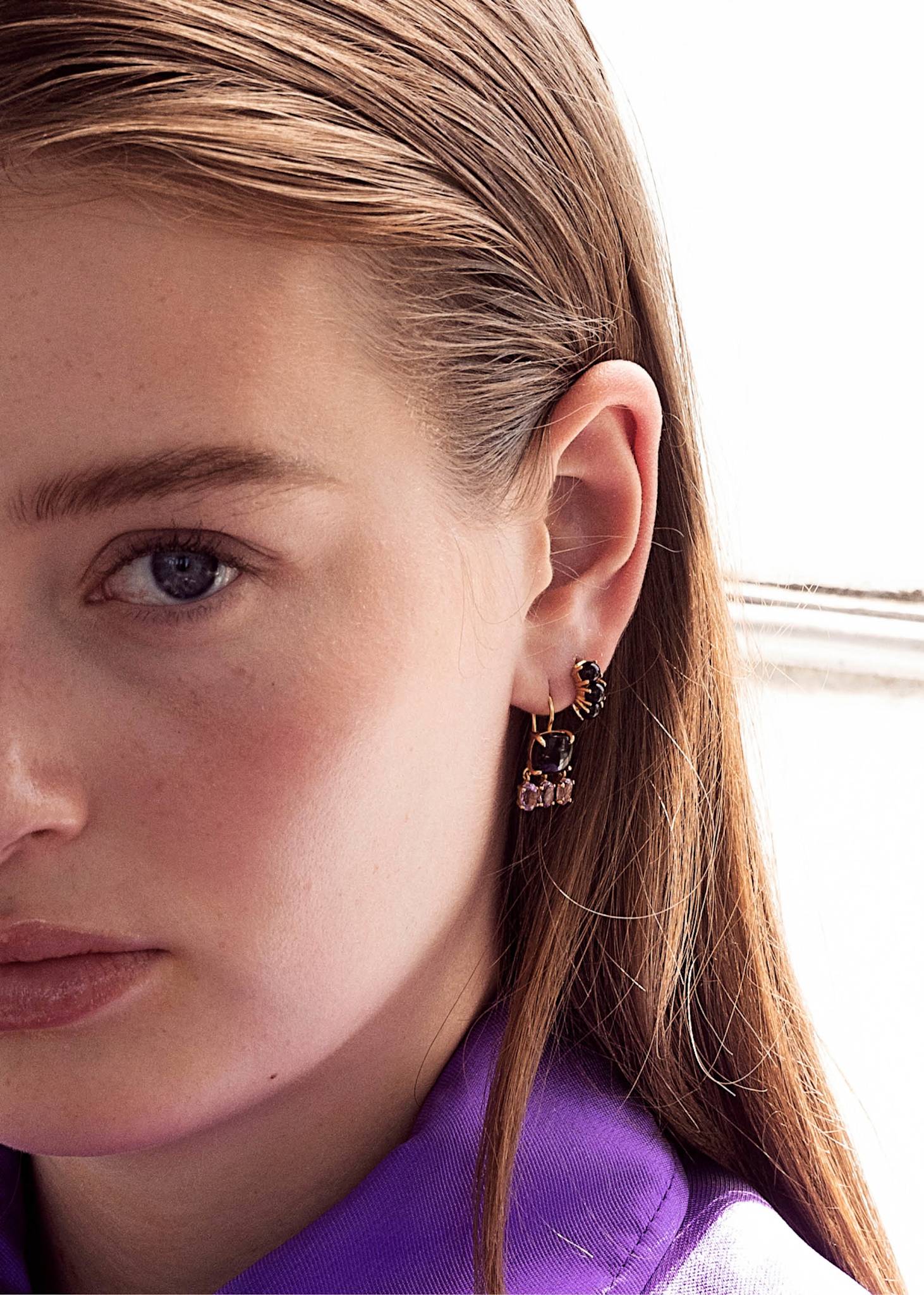 Beatrice Ohrringe mit Amethyst und schwarzem Achat - vergoldet