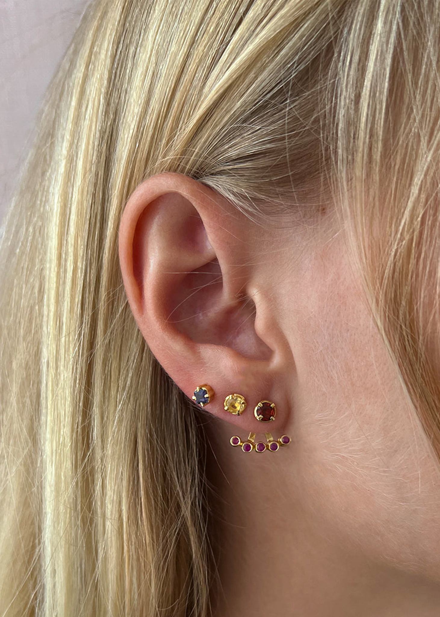 GEM Creole mit rotem Granat 1cm 1 stk - vergoldet