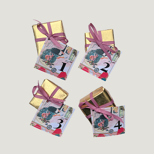Die Schmuckstücke im Adventskalender werden in unserem Atelier in Kopenhagen gefertigt und sind in begrenzter Stückzahl erhältlich. Der Wert des Sets beträgt 3.400 kr. Der Kalender ist schön verpackt und in einer feinen Carré Tote Bag gesammelt, die von Marie Rud Rosenzweig dekoriert wurde.